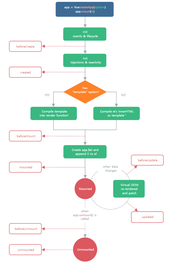 처음에는 created() 함수 안에 $refs를 사용하였는데 에러가 발생하였다.