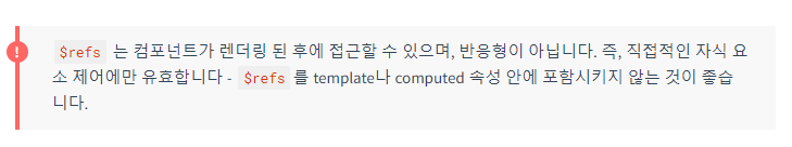 $refs는 렌더링 된 후에 접근할 수 있다고 한다.