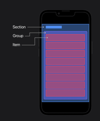 Section 을 추가하고 item 을 제공합니다.