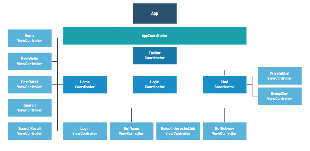 TUDY에서는 Tab Coordinator 아래에 Login Coordinator가 존재하도록 구현하였습니다.