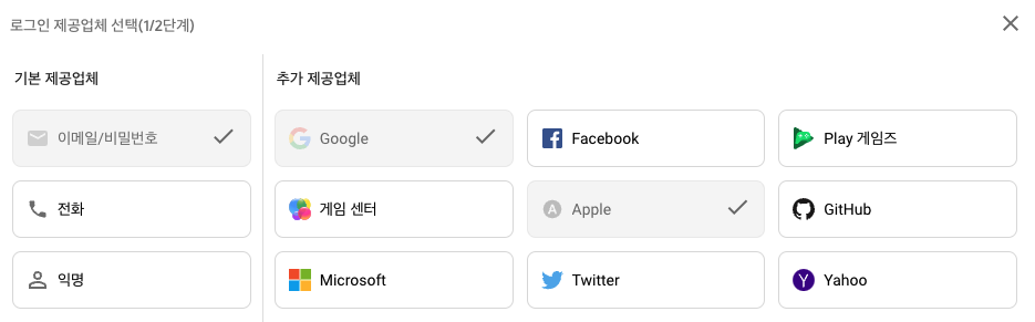 파이어베이스 인증에서는 추가 제공업체 부분의 로그인 서비스를 지원합니다. (구글, 애플 등..)