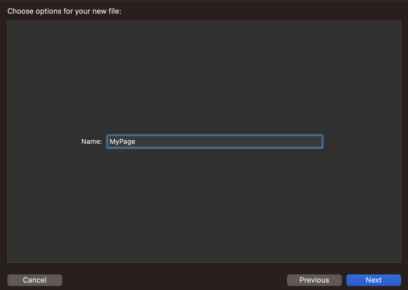저는 MyPage를 적으면 파일과 클래스명이 MyPageViewController로 생성되게 하기 위하여 Name을 받아주었습니다.