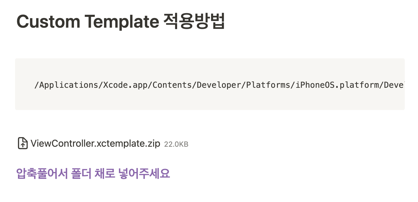 Notion에서 템플릿을 복사해서 ViewController 파일을 붙여넣는 작업의 비용을 줄일 수 있을 것이라 생각하고