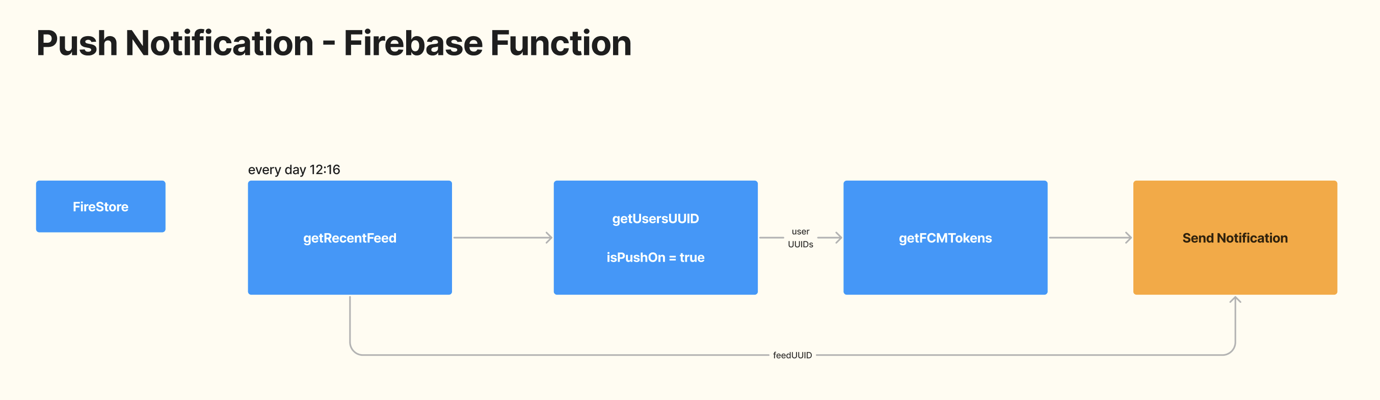 - Firestore - isPushOn 이 true로 설정되어 있는 User uuid 가져옴 (푸시알림이 On 되어있는 유저)