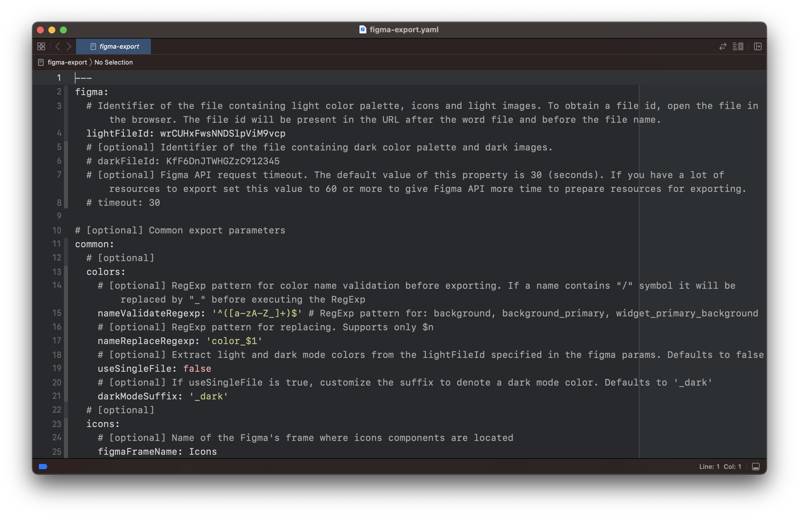 configuration 파일을 만들어야한다. 예시는 https://github.com/RedMadRobot/figma-export/blob/master/CONFIG.md