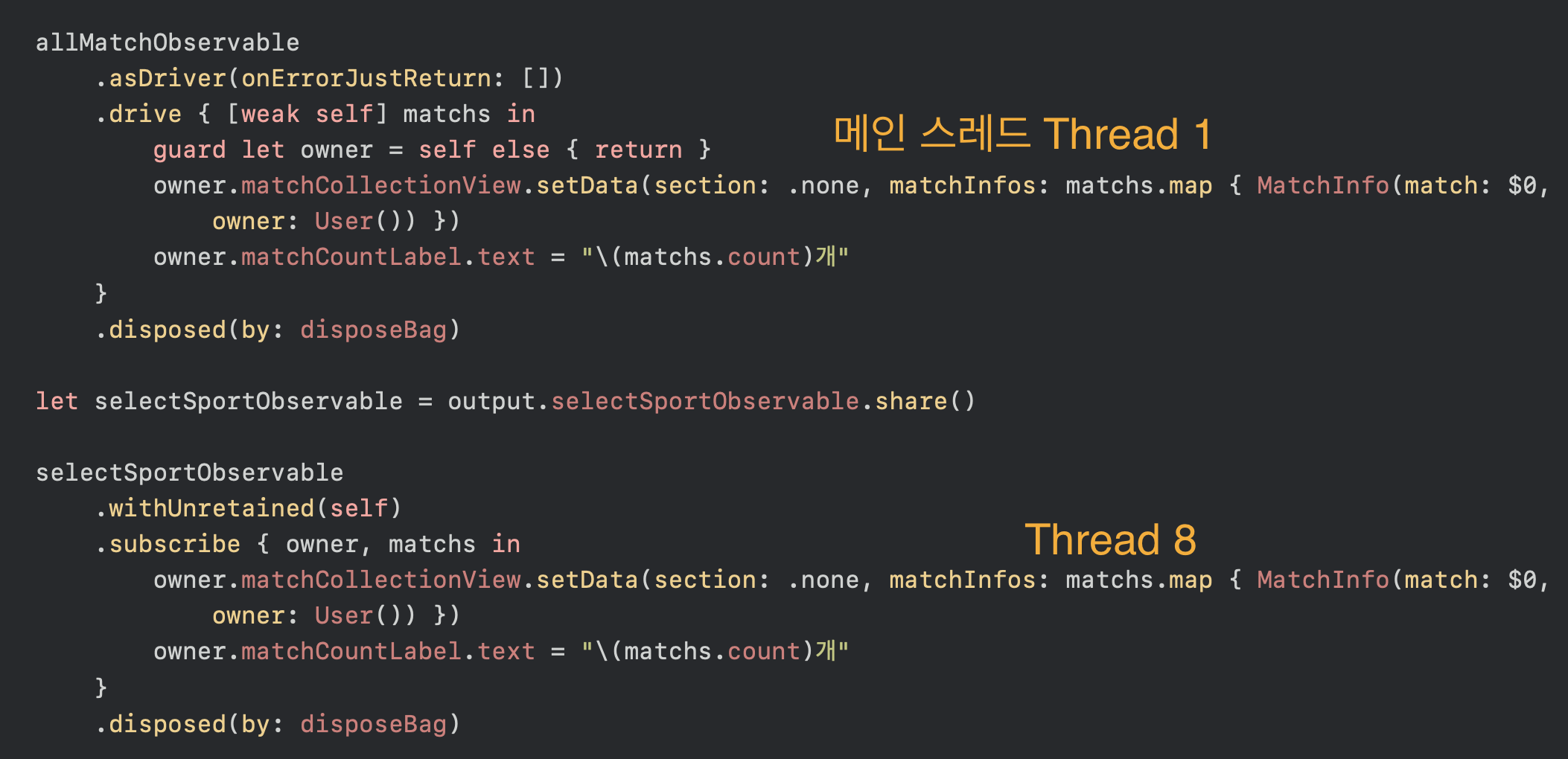 동시에 메인 스레드에서도 컬렉션 뷰 업데이트를 해야하는데