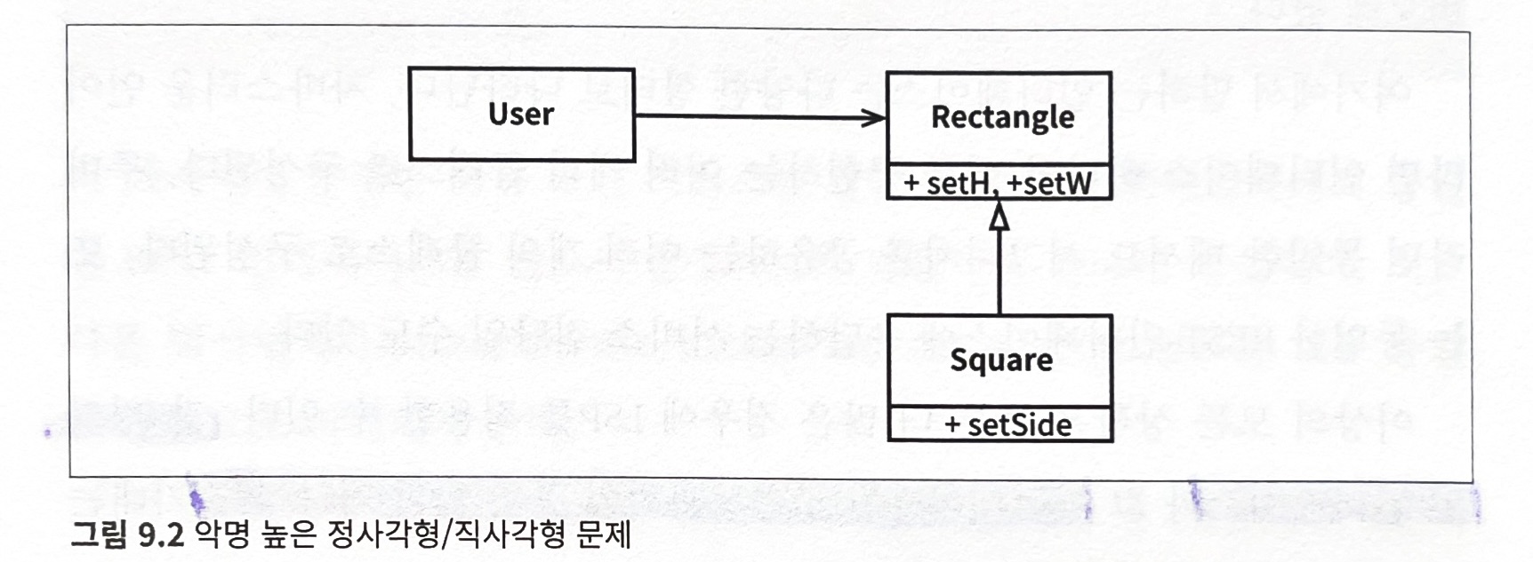 이 예제에서 Rectangle 의 하위타입으로 Square 은 적합하지 않다.