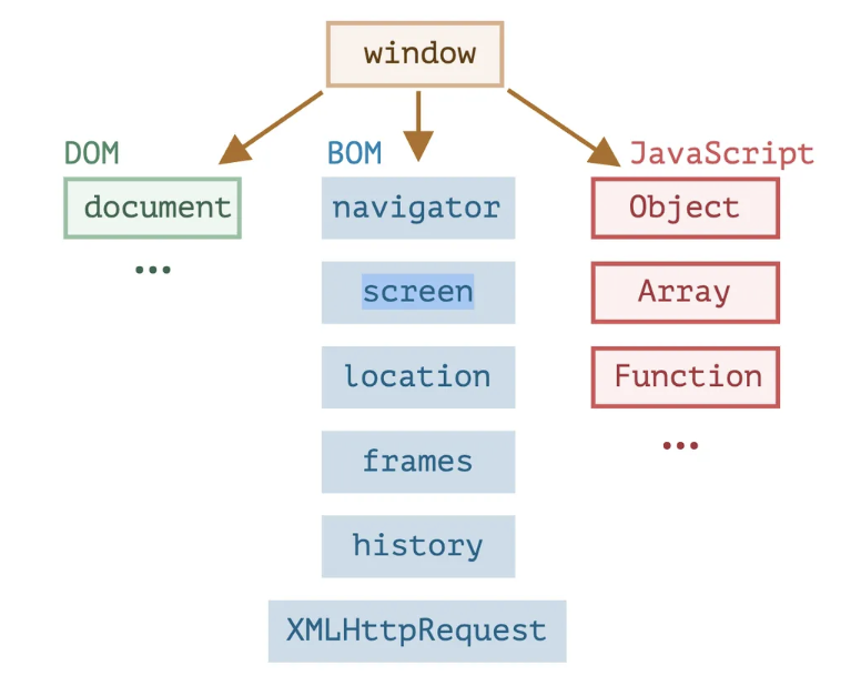 - 브라우저 창 (browser window) 을 대변하고, 이를 제어할 수 있는 메서드 제공 ex) window.innerHeight
