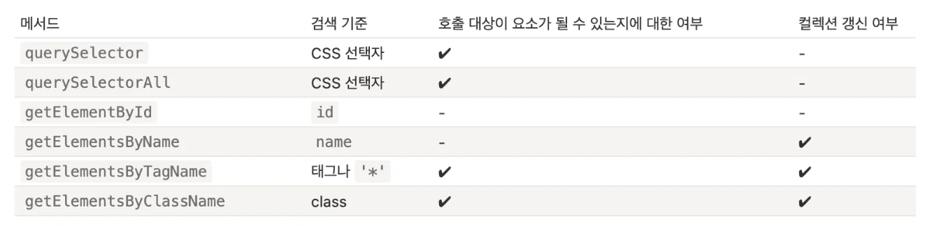 DOM에서 원하는 노드를 검색하는 주요 메서드 6가지