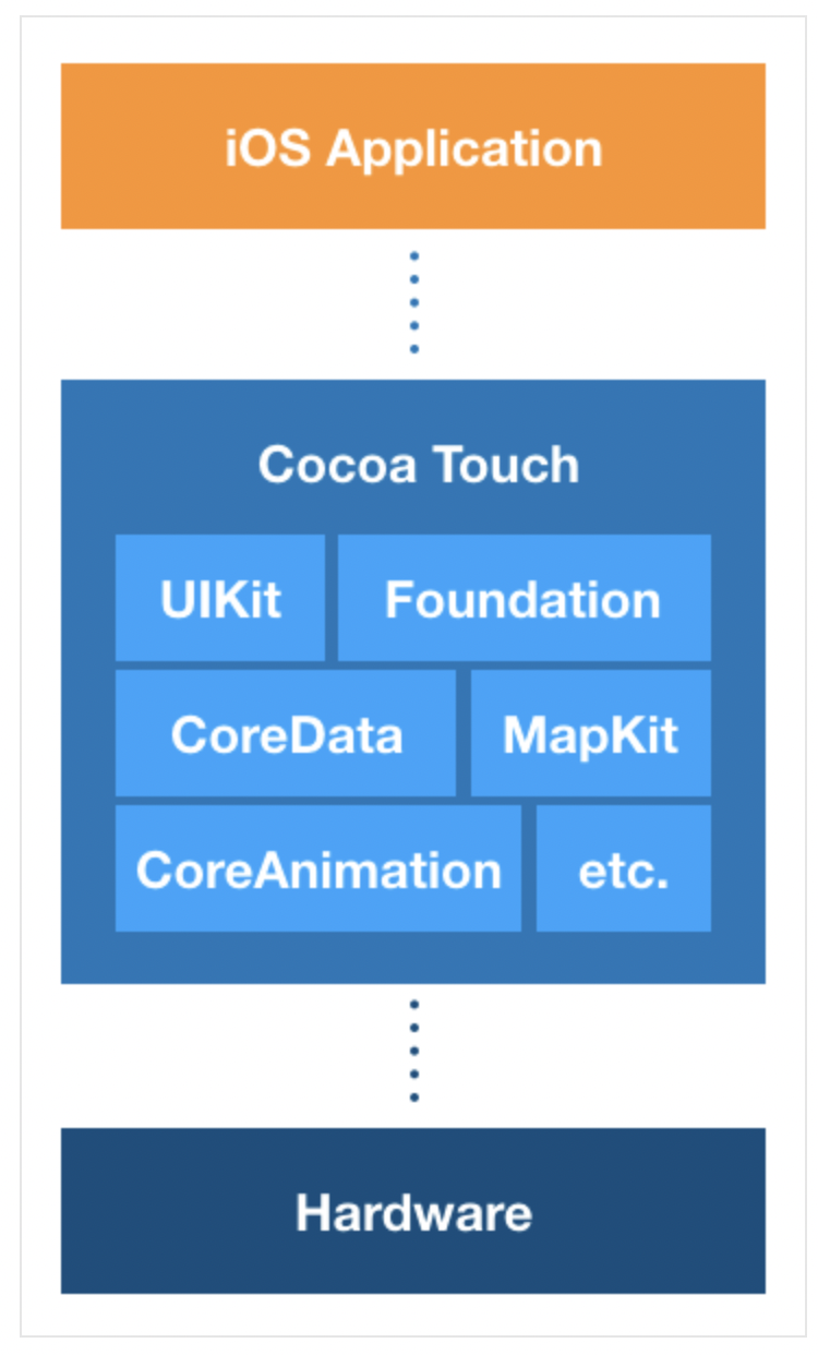이 중 UIKit 는 Cocoa Touch 계층이고, Foundation 은 Core Sevices 계층으로 UIKit 를 상속하는 것만으로도 Foundation 도 상속한 결과가 나온다.