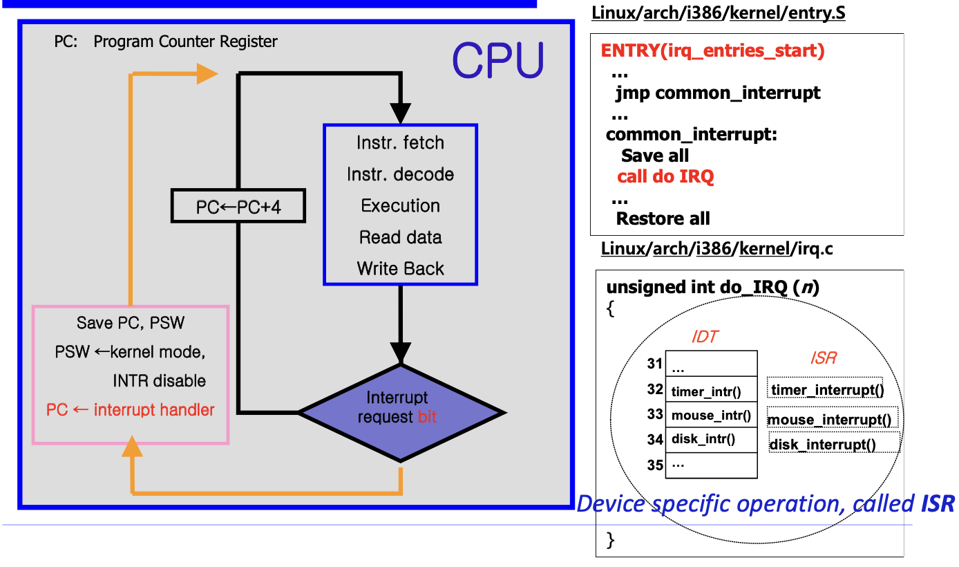 ISR (Interrupt Service Routine) : Device specific operaion 디바이스 특수 명령어 ~