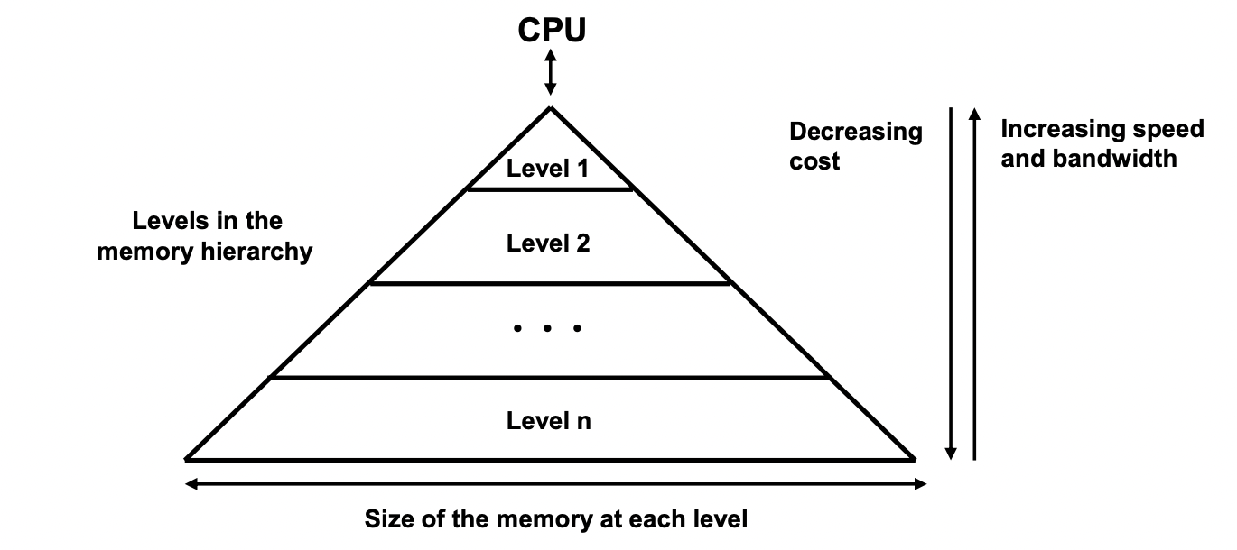 - Upper level : SRAM (small, fast, expensive)