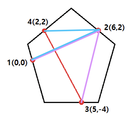 교점이 그 도형 안에 존재하는지에 대한 확신을 구하기에는 너무 복잡해서 다른 식으로 접근해야 했다._.