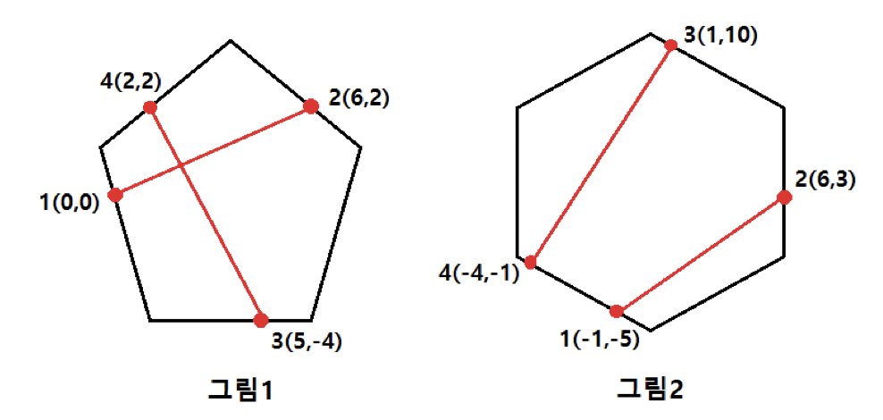 단순하게 수학처럼 선의 방정식을 구해서 교점을 찾으려고 했지만,
